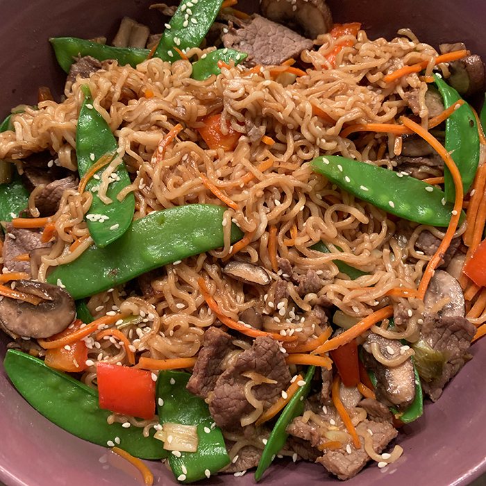 • Combine 2 Tbsp sesame oil with 1 Tbsp of vegetable oil in a separate skillet or wok. Fry noodles in oil for 3-5 minutes over medium heat, turning regularly. Add brown sugar, sesame oil, and desired amount of reserved ramen seasoning packets over noodles, and toss to coat. Add vegetables, and continue cooking, turning frequently, for another 5 minutes.
